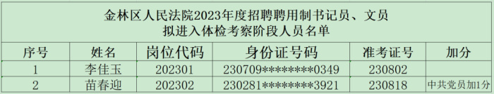 面试结果来了!伊春市金林区人民法院2023年公开招聘聘用制人员拟进入体检考察阶段人员名单