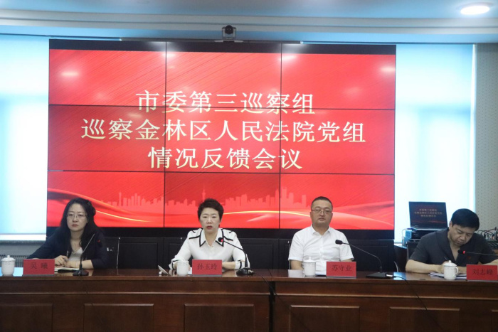 市纪委副书记、市监委副主任孙玉玲,市委第三巡察组组长苏守业、副组长吴曦及巡察组成员,金林区委常委、组织部长孙刚,区委常委、纪委书记、监委主任刘洋出席会议。金林区人民法院党组领导班子成员、区纪委监委派驻纪检组组长高鹏参加会议。