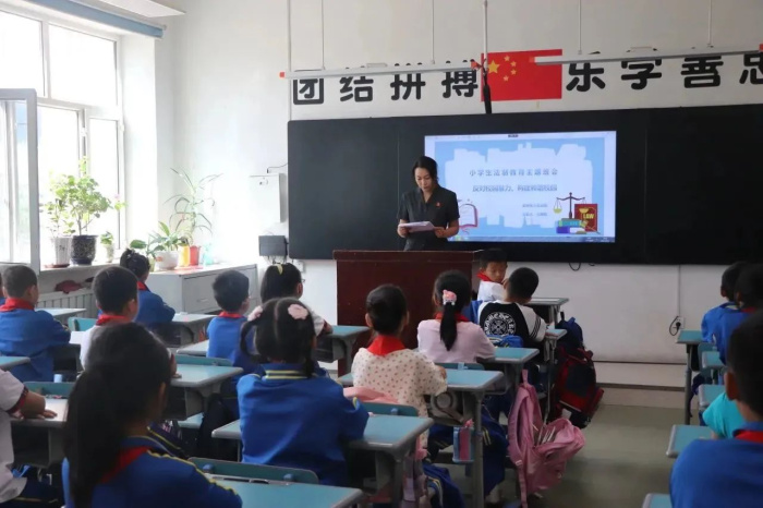 9月1日,黑龙江省高院党组书记、院长党广锁为全省中小学生线上集体授课,金林区人民法院法治副校长吴晓霞走进金林区西林小学组织学生、老师、家长开展“法治第一课”。