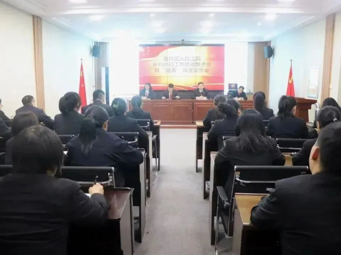 1月2日,金林区人民法院召开审判执行工作质效推进会暨“脱薄”攻坚反思会,会议由院党组书记、院长刘志峰主持,党组成员、各庭室负责人及全体干警参加会议。