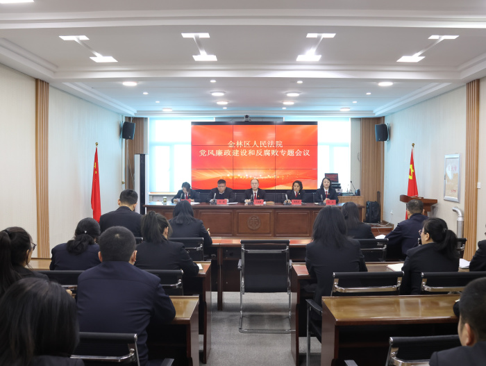 为进一步推动全面从严治党,强化党风廉政建设,持续巩固风清气正的政治生态,12月15日,金林区人民法院召开党风廉政建设和反腐败工作会议。金林区法院党组书记、院长王振雷出席会议并讲话,派驻纪检监察组负责人高鹏出席会议并讲话,党组成员、政治部主任张玲主持会议,区法院班子成员及全体干警参会。