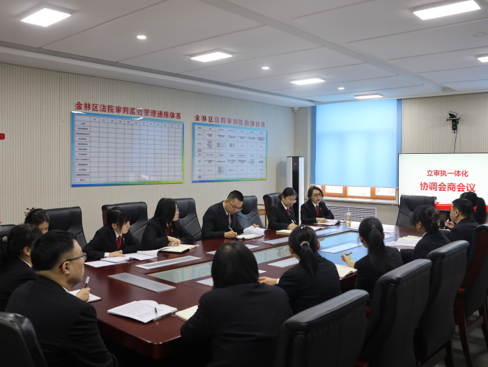 为精准研判立审执工作态势,梳理短板、明确方向,推动审判执行工作高质量发展,3月10日,金林区人民法院组织相关部门进行立审执一体化协调会商。金林区法院党组成员、副院长吴晓霞,党组成员、副院长李红玉共同主持会议,执行局、立案庭(诉讼服务中心)、民事审判庭、刑事审判庭、西林人民法庭等相关部门负责人及骨干干警参会。