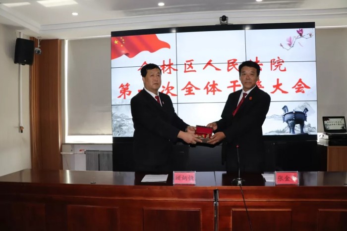 揭牌仪式结束后,金林区法院召开第一次全院干警大会。市中院党组成员、副院长顾炳恒做重要讲话,希望金林区法院全体干警提高政治站位,形成合力,勇于担当,积极作为,争当全市法院的排头兵,以更好的风貌、更优业绩回报党和群众的信任与期待。