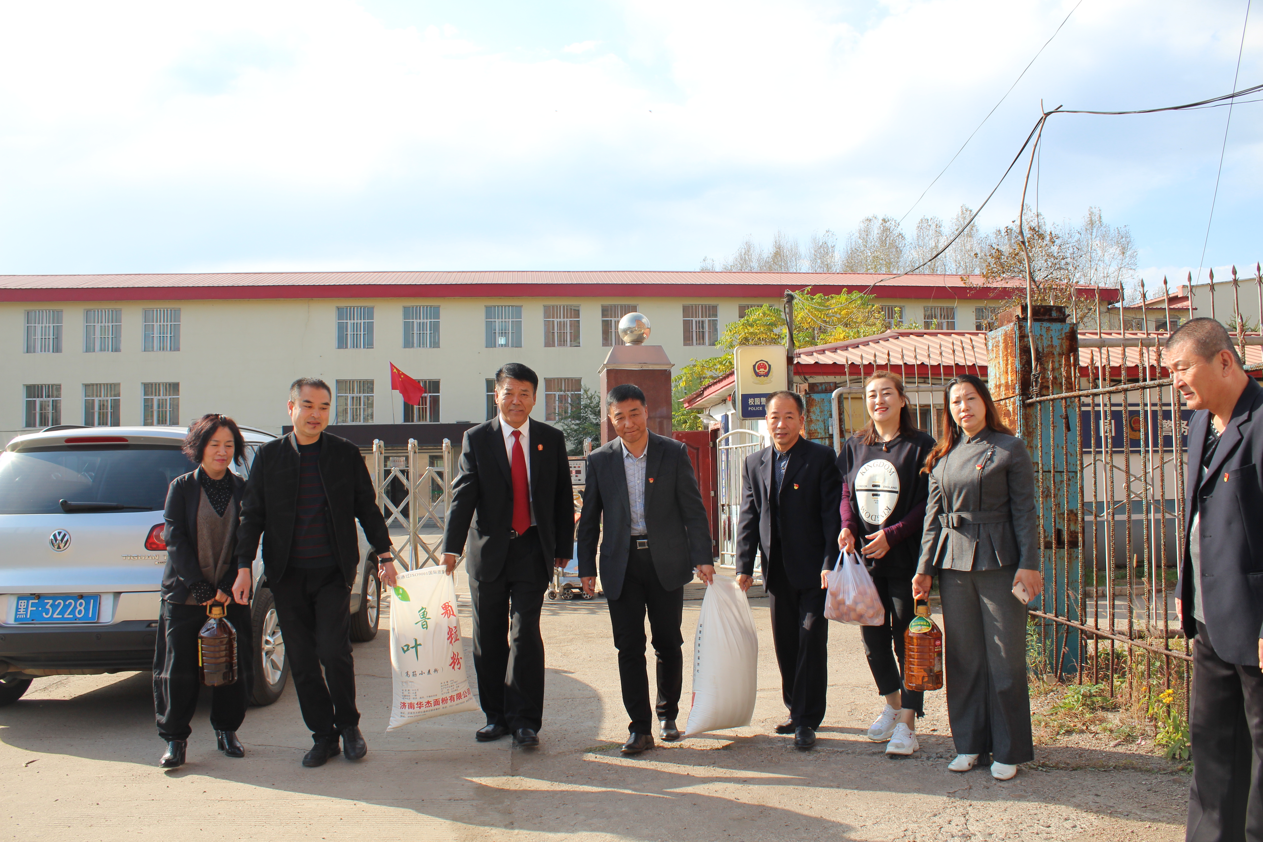 9月27日上午,金林区人民法院党组书记、院长张金华深入党建联系点新强小学参加“不忘初心 牢记使命”主题党日活动,在新强小学校长高连成的陪同下为离退休老教师王国珍送去白面、鸡蛋和食用油等慰问品。