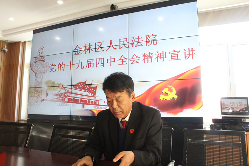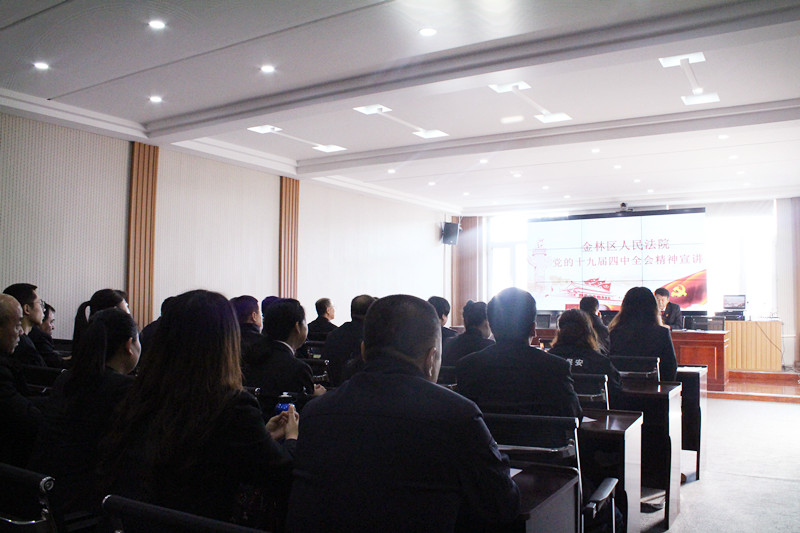 11月25日,金林区人民法院召开院党组专题学习扩大会议,专题学习党的十九届四中全会精神,党组书记张金华主持会议并传达了党的十九届四中全会精神,并结合法院工作实际就做好党的十九届四中全会精神学习宣传工作作了部署和动员。