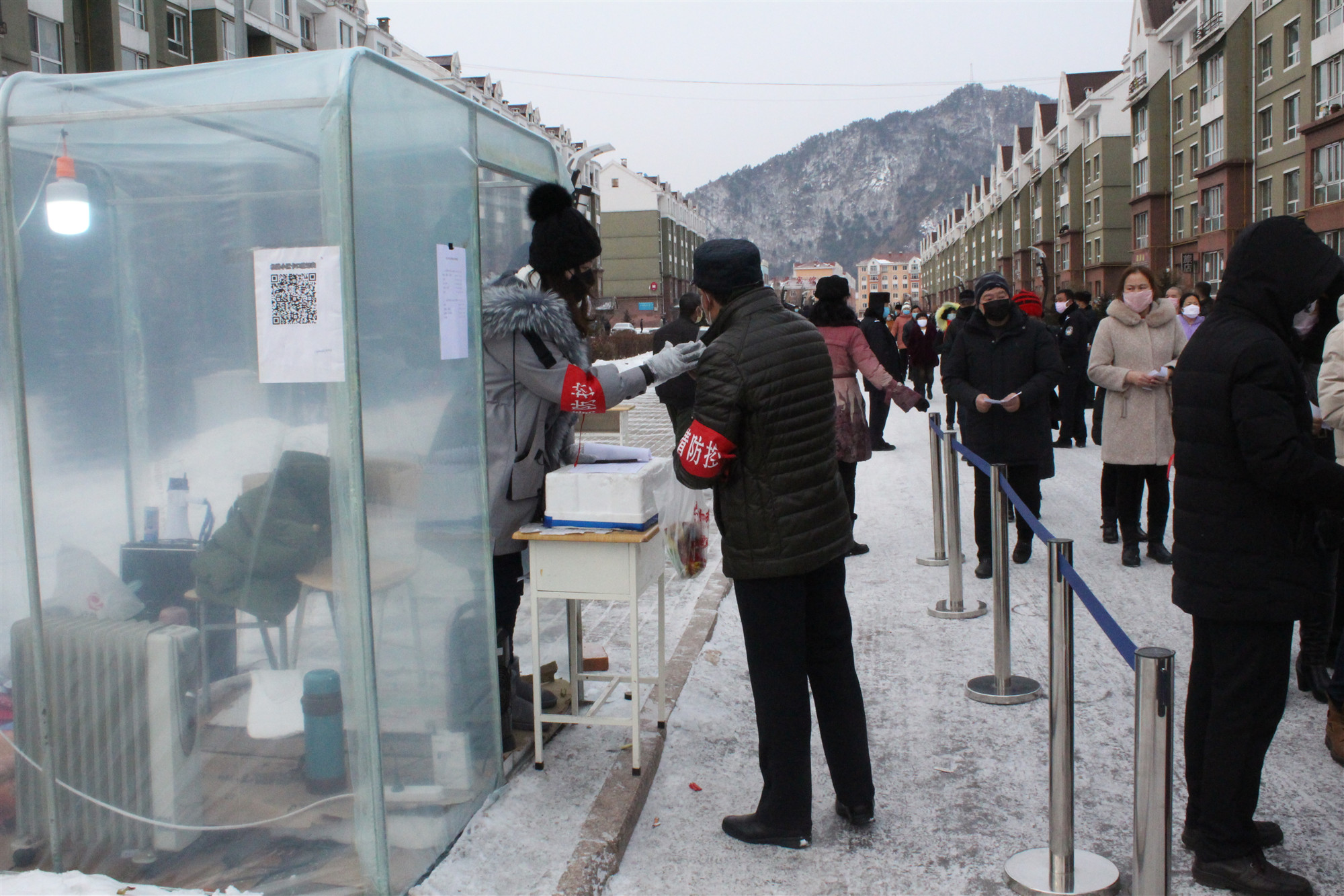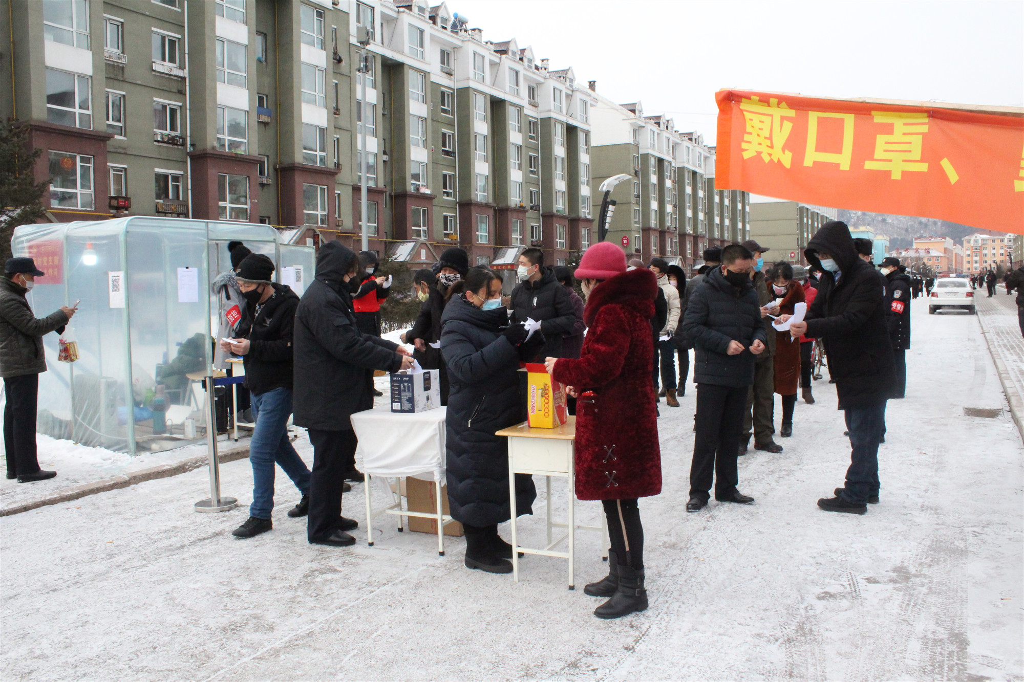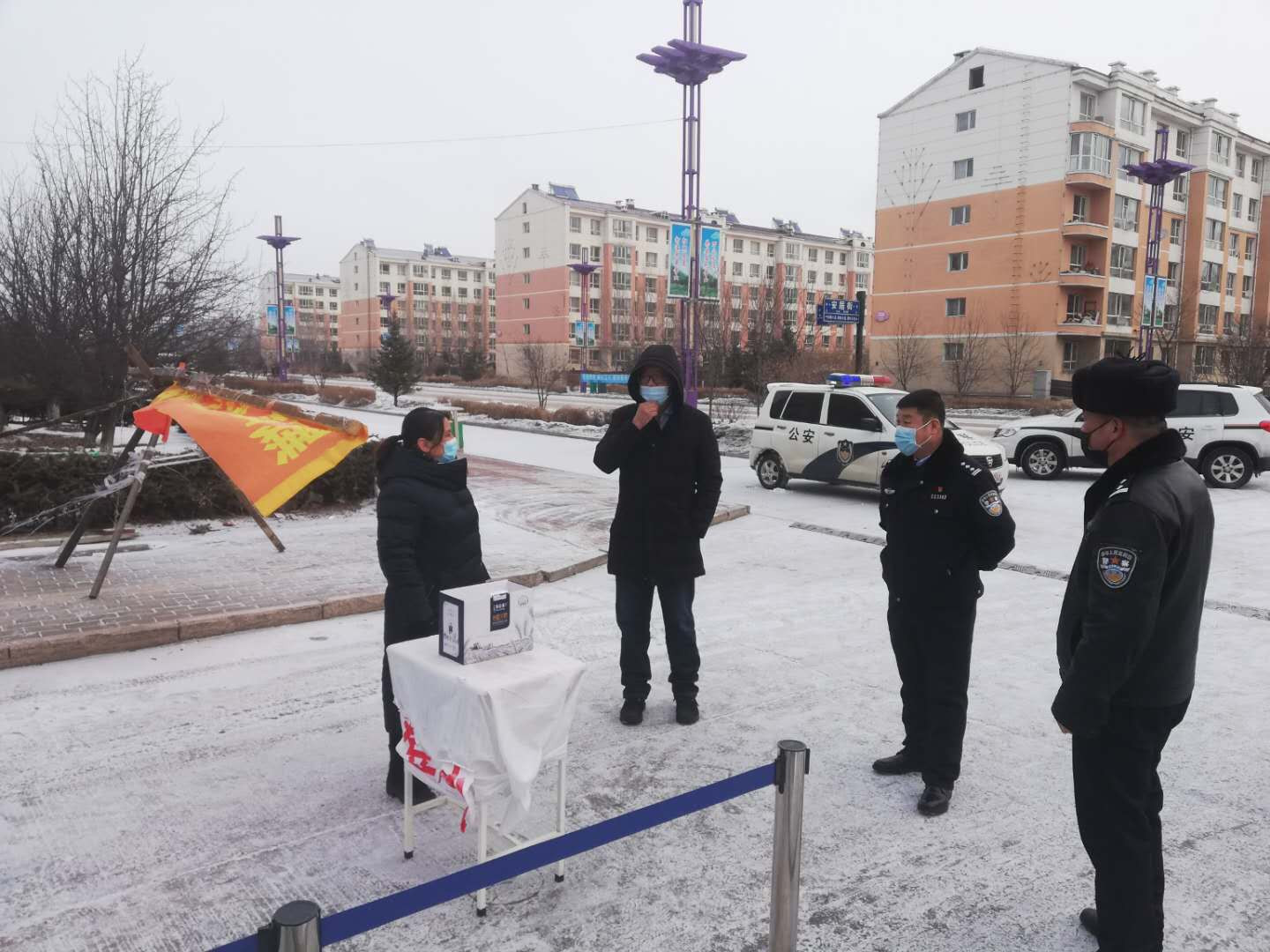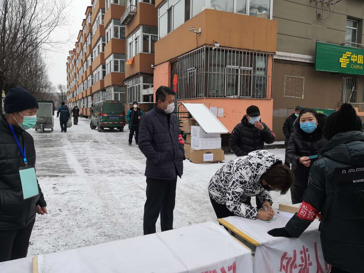 按照金林区领导小组指挥部的相关要求,3月4日,金林区部分小区首次开放,允许居民外出购买生活用品,每户每两天外出一人。金山屯镇杜鹃小区卡点和西林法庭卡点防控小区均在今天开放之列。为减少人员聚集、规范居民外出购物行为,院党组书记、院长张金华及部分干警主动来到两个卡点支援,助力“首日出行”有序进行。