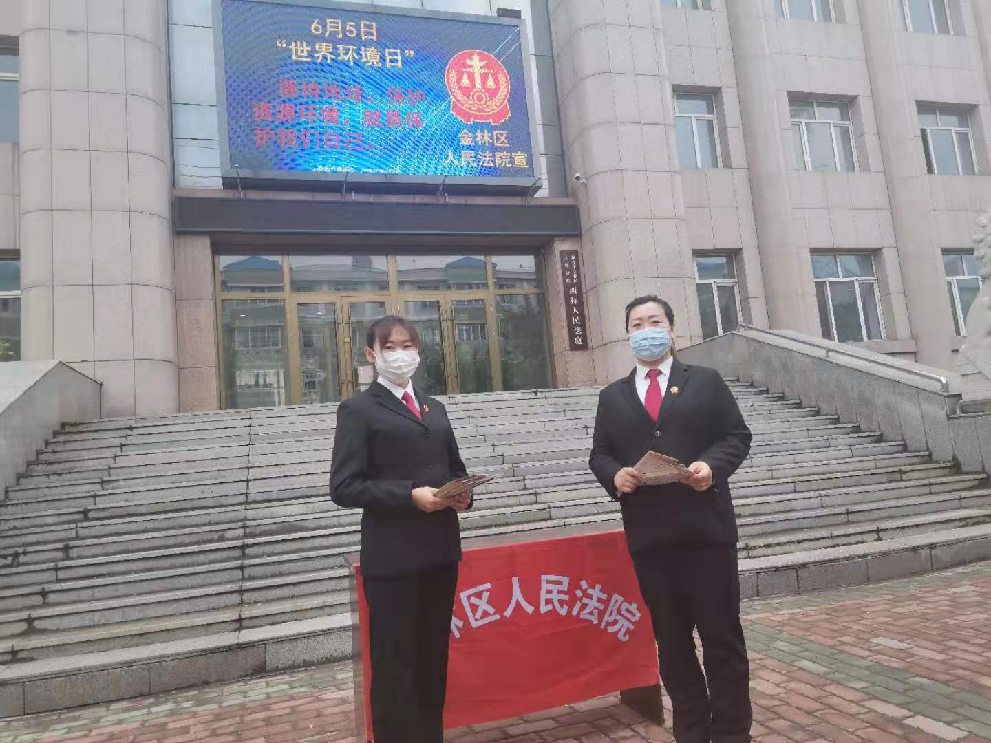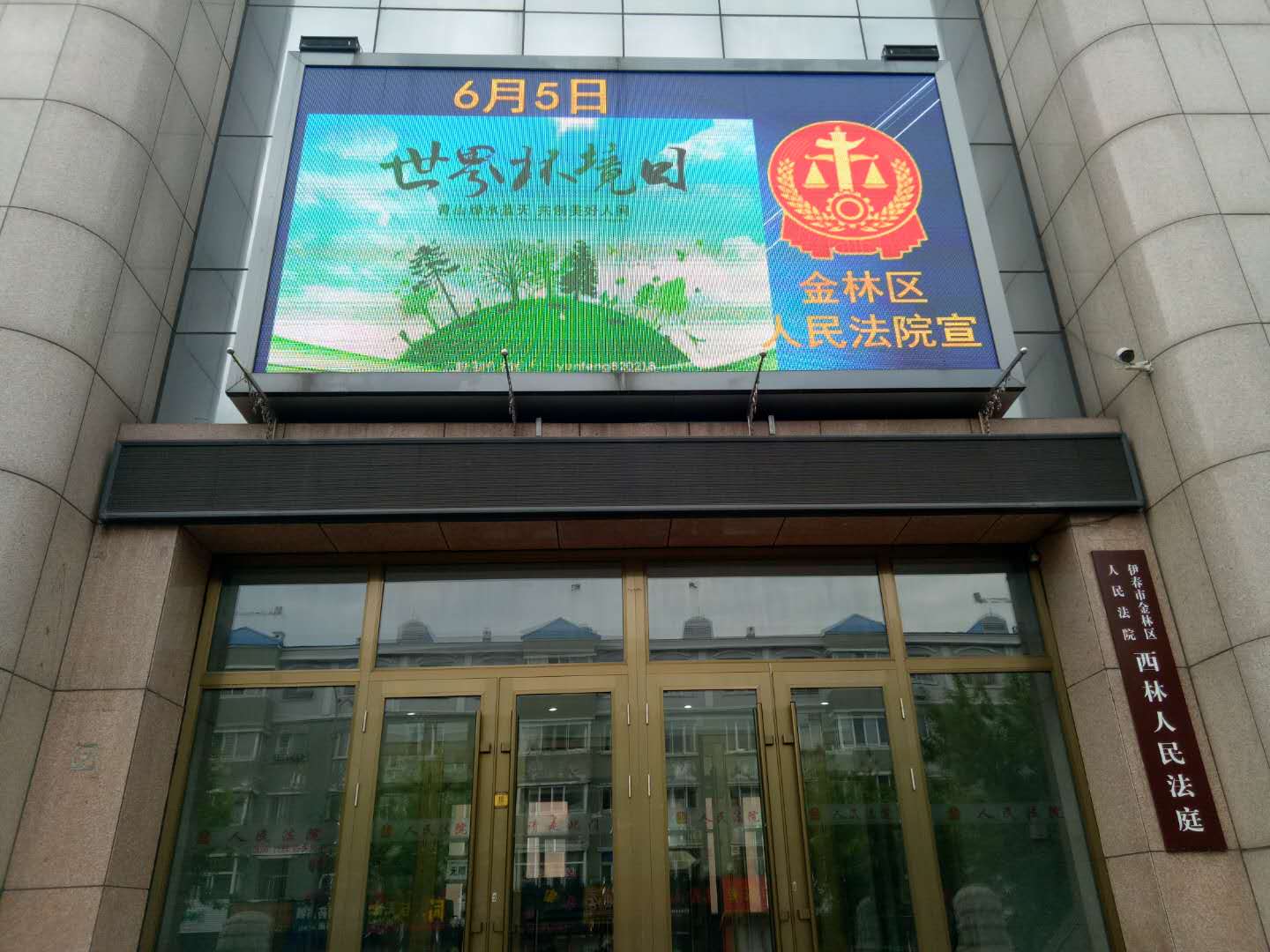 6月5日上午,金林区人民法院干警在西林法庭门口摆摊设点,开展环境保护普法宣传活动。为扩大宣传效果,金林区法院及西林法庭利用室外电子屏滚动播放环境保护宣传口号和宣传视频。